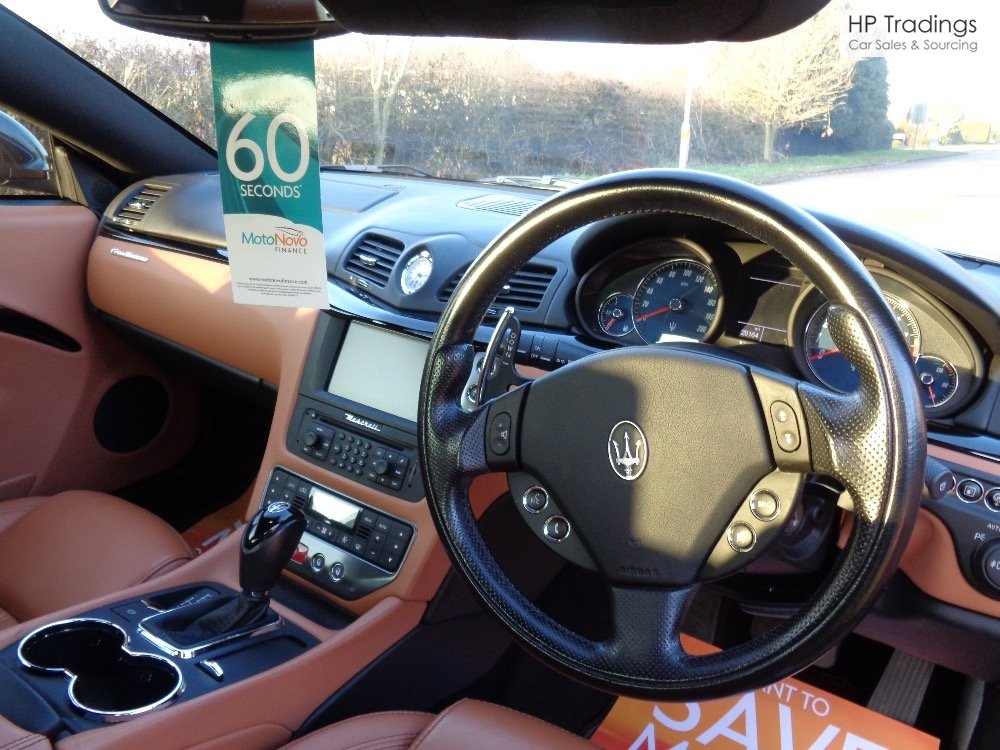 Full Maserati Service History at Joe Macari London, Just Serviced, MOT, 2 New Rear Tyres, Low Rate funding available, Finished in Grigio Granito With Cuoio Leather-Factory Special Order, Warranty*, Upgrades - Skyhook - Ele. Variable Active Damping System, Bose Surround Sound System, Alloy Wheels - 20in Birdcage Design, iPod Connection, Auto Dimming Exterior Mirrors, Car Cover, Metallic Paint, Front & Rear Parking Sensors, Tyre Pressure Monitoring System (TPMS), Comfort Pack Front Seats, Trident Logo Stitched on Head Rests, Alcantara Headlining Colour Upon Request, Piano Nero Black Trim, Stitching Colour Steer.W./Gear Knob/Gaiter, Red Calipers, Standard Features - Navigation, Cruise Control, Dual Zone Automatic Climate Control with Two Rear Air Outlets, Front and Rear Parking Sensors, Voice Control, Alarm System ( Perimeter and Volumetric Sensing ), Anti - Lift Device, Bluetooth, Electrically Adjustable Front Seats with Lateral Support, Maserati NavTrak Tracking System with Automatic Driver Recognition and Remote Inhibition, RDS Tuner, Single CD Player, 30Gb Hard Disk Drive,USB and Aux-in Port, Rain Sensor, Upholstery - Poltrona Frau Leather, Maserati Hi - Fi Loudspeaker System, Maserati Stability Program, Bi-Xenon Front Headlamps with Integrated LED Day Running Lights (DRL) and Adaptive Light Control System, Satellite navigation, Multifunction Steering Wheel with Active Shifting Gear Shift Paddles. Grey, All Credit/Debit & AMEX Cards Taken, Finance Available, All Viewings By Appointment Only, Warranty**